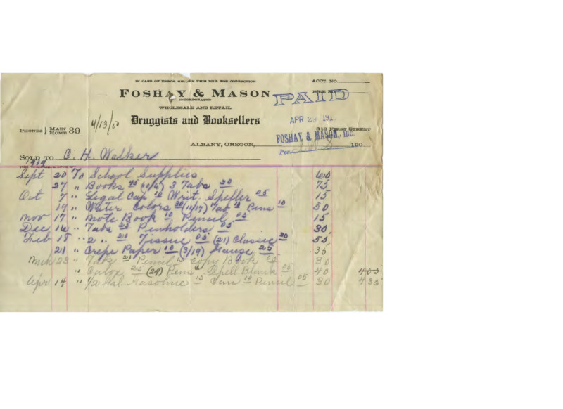 Cyrus Walker was the oldest son of the early Oregon Territory missionaries Elkanah and Mary Richardson Walker. He grew up at Tshimakain in the 1830s-40s, where he learned the native Spokane language. After joining the U.S. army during the Civil War and then attempting to make a living as a farmer, he became a teacher at the Warm Springs Indian Agency. These letters, documents and clippings shed light on his experiences as a missionary, a soldier, a pioneer and a teacher at Warm Springs. This collection was donated to Pacific University by Betty Thorne, a descendant of the Walkers.