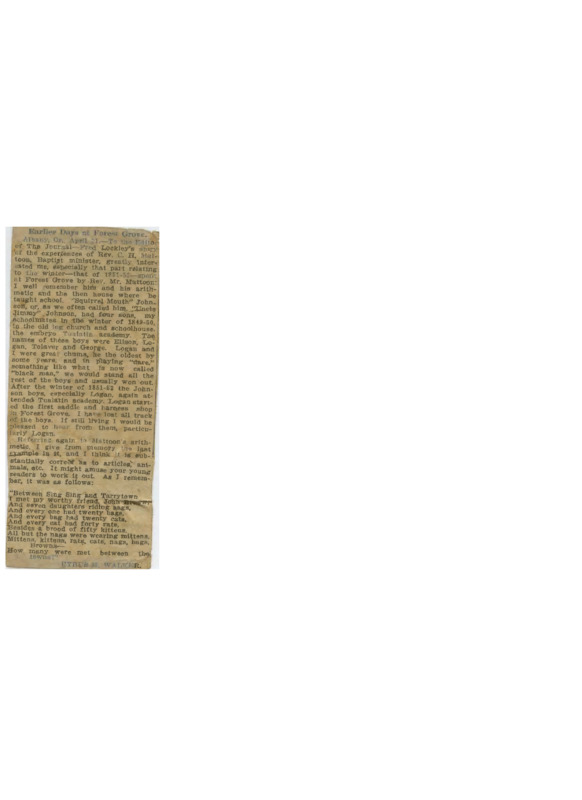 'Earlier Days at Forest Grove' news article by Cyrus Walker