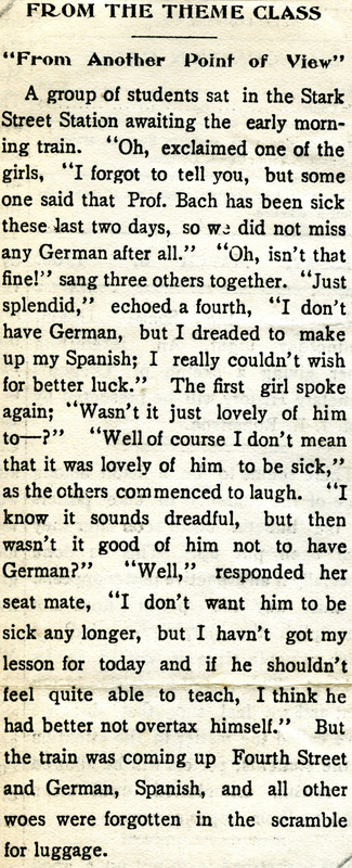 'From the Theme Class' Index Newspaper Article, Frances B. Clapp Scrapbook (1906), 92, Pacific University Archives, Forest Grove, Oregon.