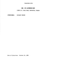 An audio recording of an oral history of Ivy Livermore Bany and her account of life in Beaverton from the early 1900s through the present. The audio is very faint in places and difficult to hear. There is a transcript of this interview.