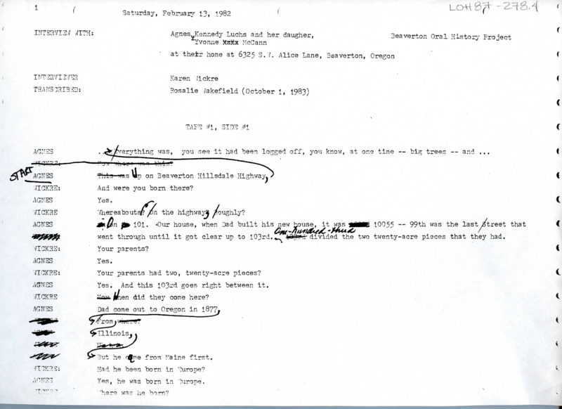 - Agnes Kennedy Luchs and Yvonne McCann oral history recording Part 1