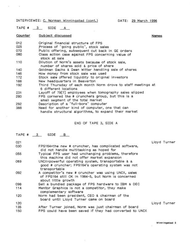 - An audio recording of an oral history of C. Norman Winningstad about the developent of the high-tech business in Washington County, Oregon. There is an index of this interview.