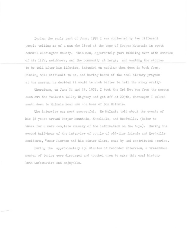 - An audio recording of an oral history of Don McInnis, including some stories from friend Oscar Pierson and his sister Clara who stopped by for the last part of the interview.