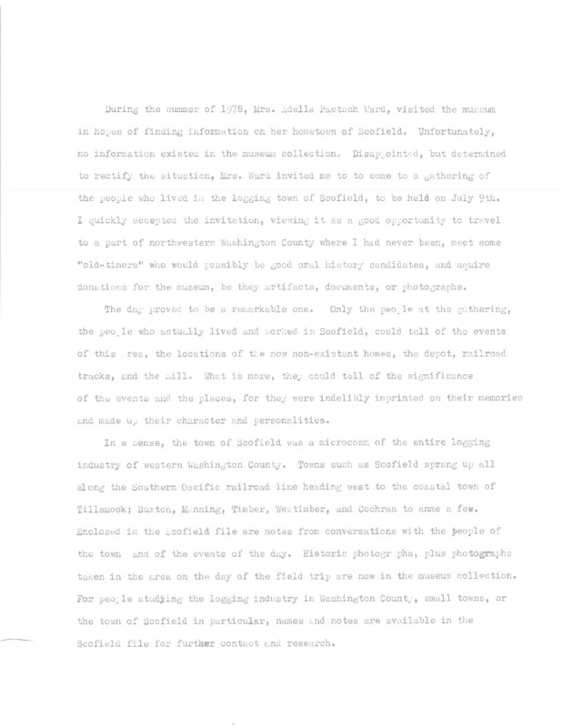 - An audio recording of an oral history of E.W. Feldt on the history of Scofield. There is a transcript of this interview.