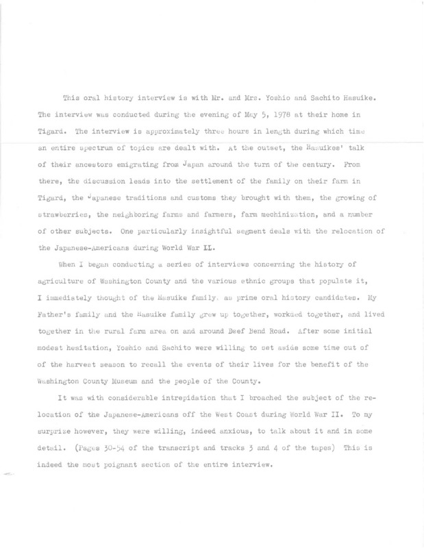 - Yoshio and Sachito Hasuike oral history recording Part 3