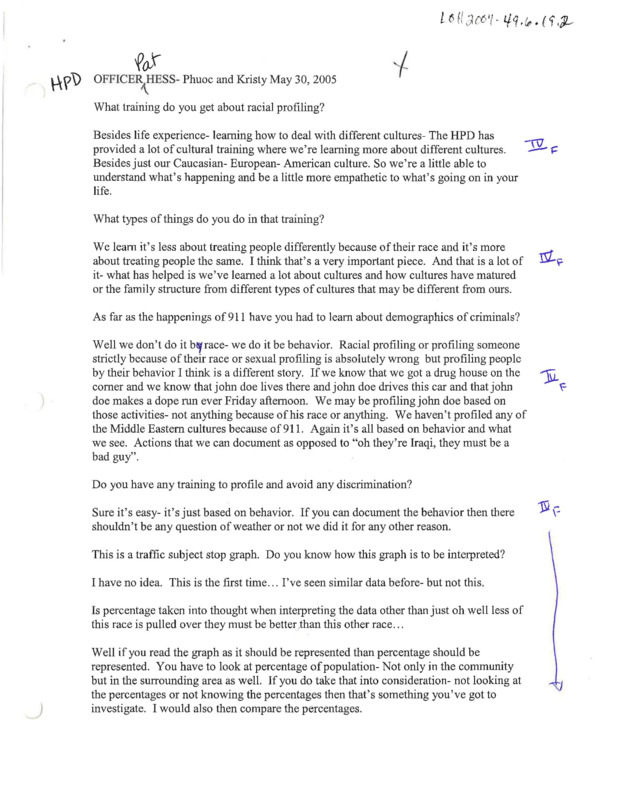 - An audio recording of an oral history of Officer Pat Hess on trends in crime and law enforcement in Hillsboro, Oregon from 1980-2005. There is a transcript of this interview.