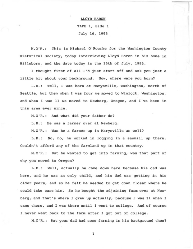- An audio recording of an oral history of Lloyd Baron. There is a transcript of this interview.