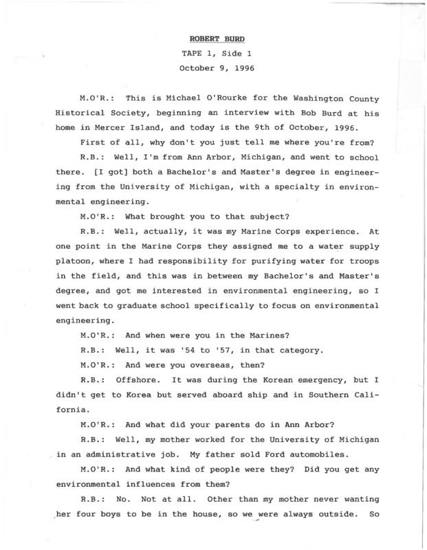 - An audio recording of an oral history of Robert Burd. There is a transcript of this interview.
