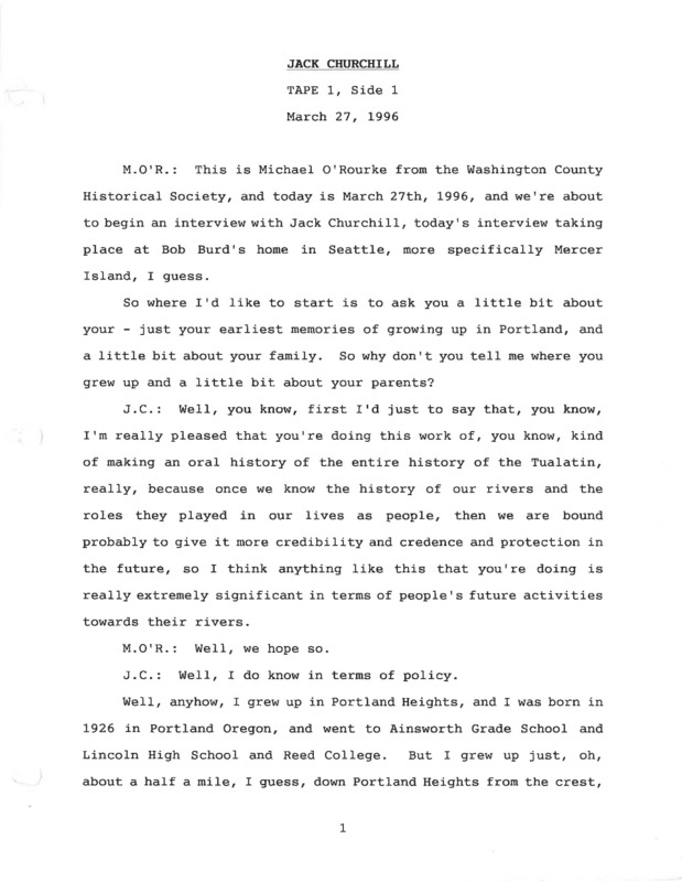 - Tualatin River Oral History Collection
