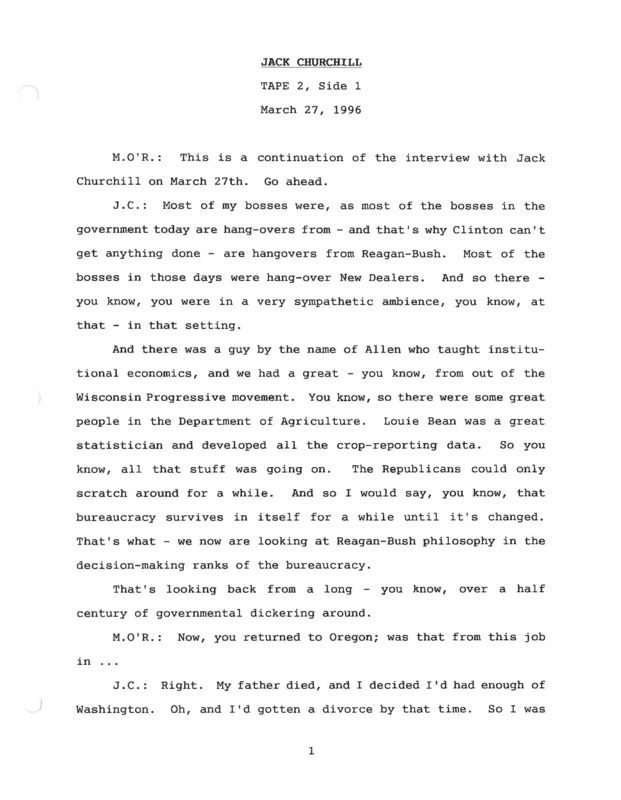 - An audio recording of an oral history of Jack Churchill. There is a transcript of this interview.
