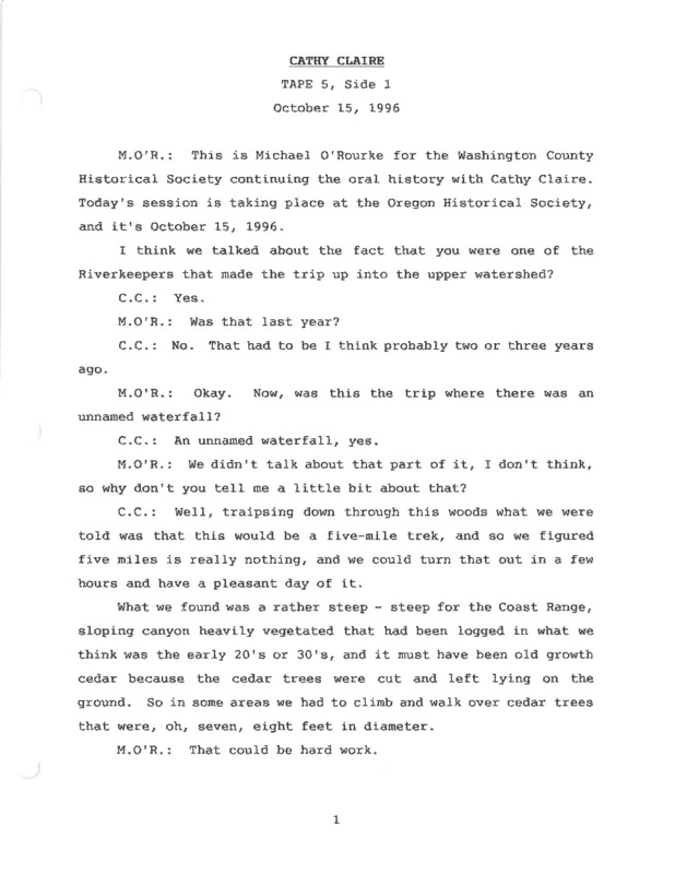 - An audio recording of an oral history of Cathy Claire. There is a transcript of this interview.