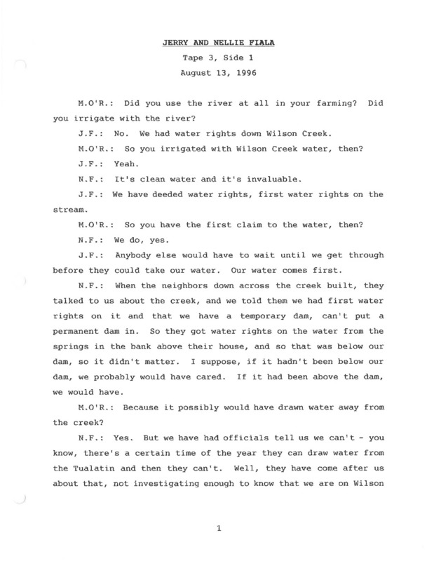 - An audio recording of an oral history of Jerry and Nellie Fiala. There is a transcript of this interview.