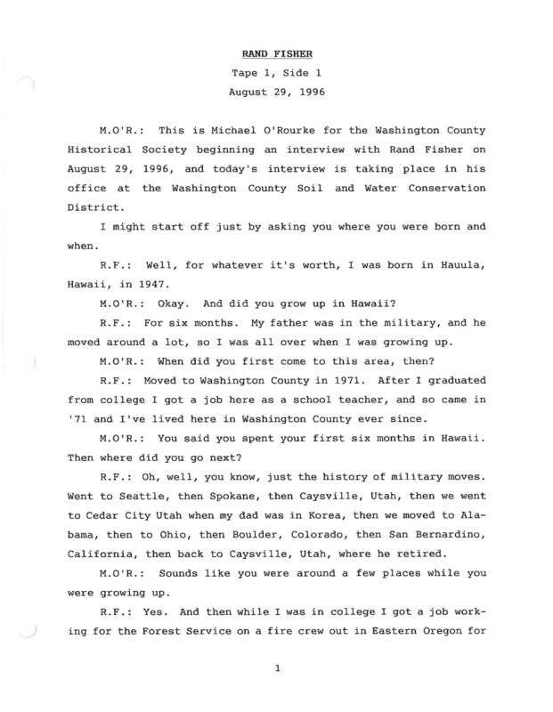 - Rand Fisher oral history recording Part 1