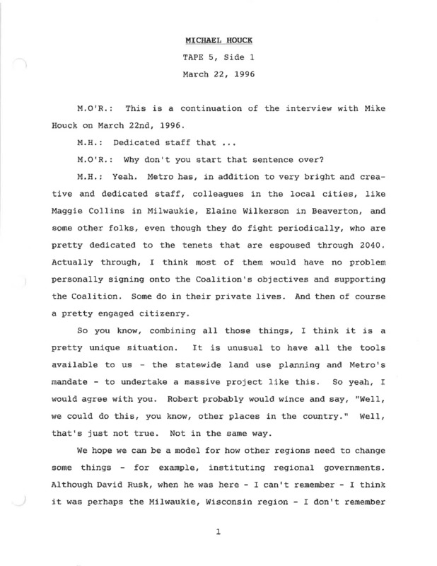 - An audio recording of an oral history of Mike Houck. There is a transcript of this interview.