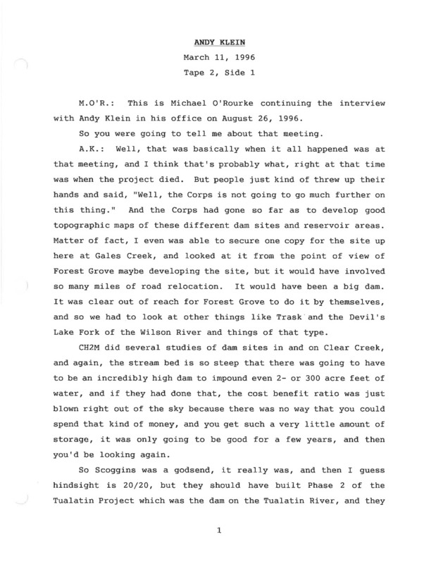 - An audio recording of an oral history of Andrew Klein. There is a transcript of this interview.