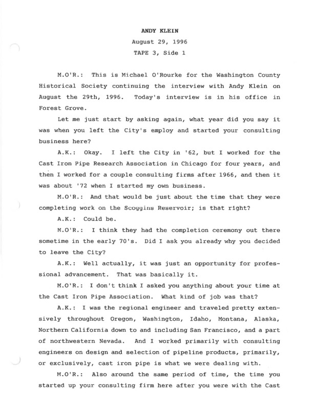 - An audio recording of an oral history of Andrew Klein. There is a transcript of this interview.