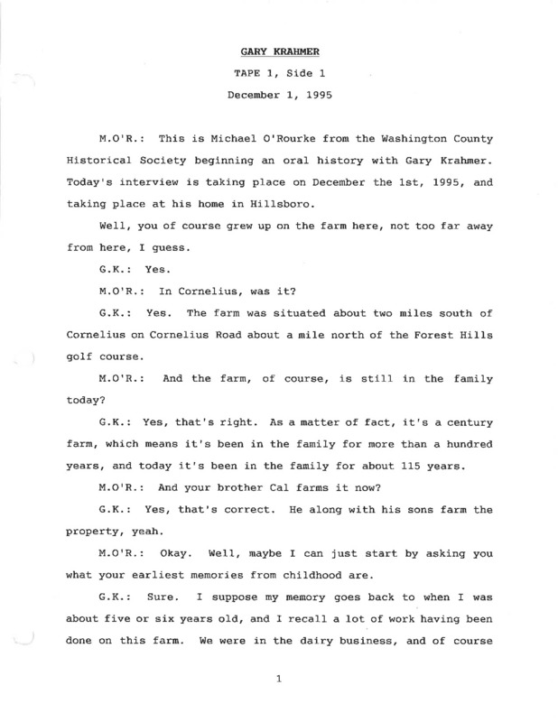 - Gary Krahmer oral history recording Part 1