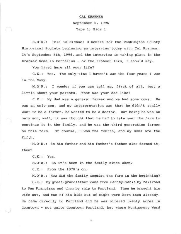 - An audio recording of an oral history of Cal Krahmer. There is a transcript of this interview.