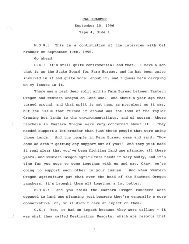 - An audio recording of an oral history of Cal Krahmer. There is a transcript of this interview.