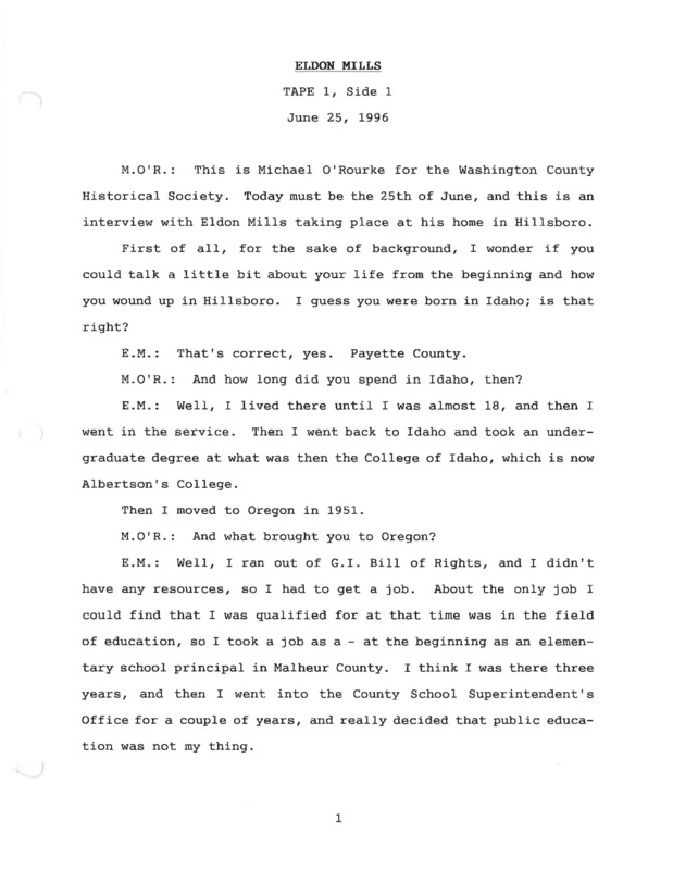 - An audio recording of an oral history of Eldon Mills. There is a transcript of this interview.