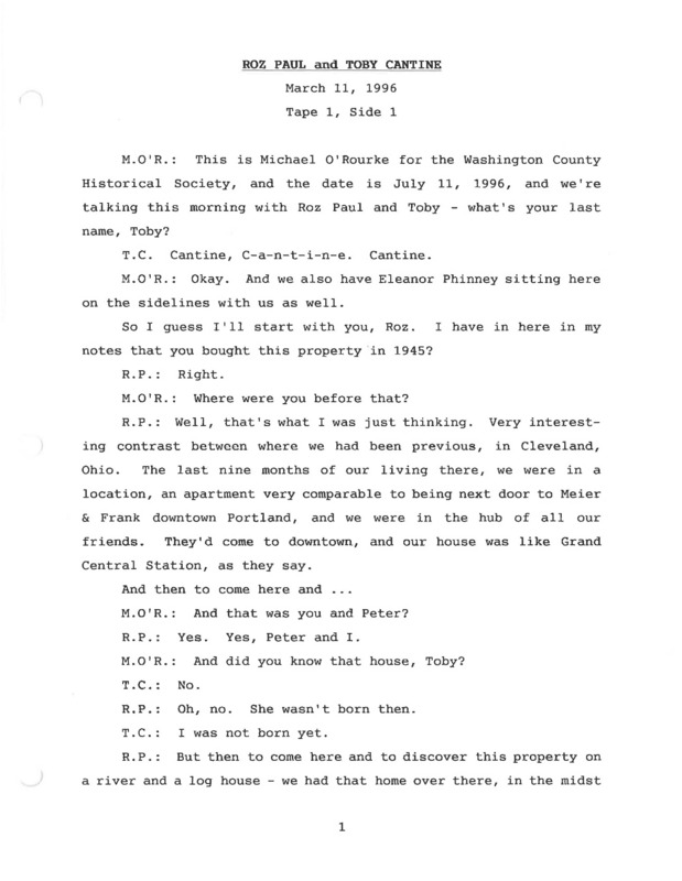 - Roz Paul and Toby Cantine oral history recording Part 1