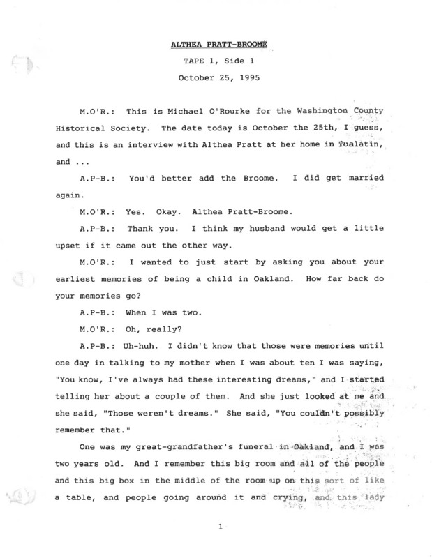 - An audio recording of an oral history of Althea Pratt-Boone. There is a transcript of this interview.