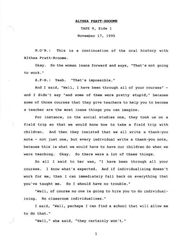 - Althea Pratt-Broome oral history recording Part 9
