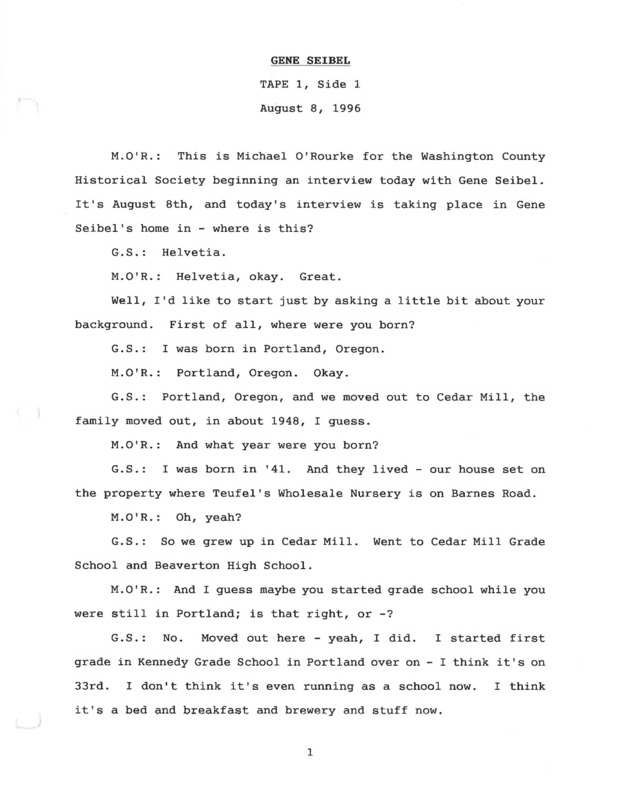 - An audio recording of an oral history of Gene Seibel. There is a transcript of this interview.