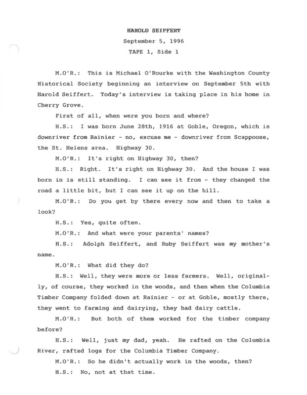 - An audio recording of an oral history of Harold Seifert. There is a transcript of this interview.