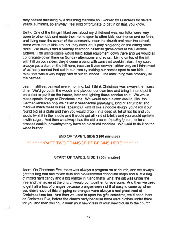 - An audio recording of an oral history of siblings Robert Yungen, Betty Powers, and Jean Yonello. There is a transcript of this interview.