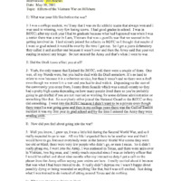 An audio recording of an oral history of Jim Roehm on the effects of the Vietnam War in Hillsboro. Roehm was a college student just before the war and later joined ROTC. The U.S. was involved in a guerilla war in Laos/Vietnam during his sentior year of college. In the military, he was stationed in Texas for 9 months then sent to Panama for training in jungle warfare. For two years, he was a platoon leader and executive officer of the company in Vietnam. Overall, Mr. Roehm remembers Hillsboro being a fairly conservative town, there being only one individual he would describe as an