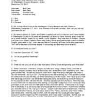 - An audio recording of an oral history of Robert A. (Bob) Clarke, Pacific University Alumnus, on Cherry Grove, Oregon. There is a transcript of this interview.