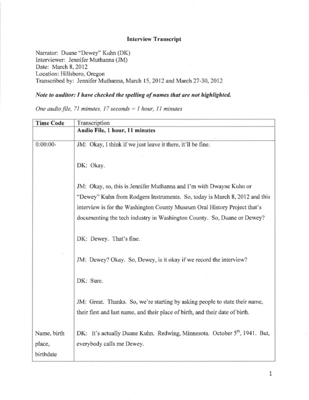 - An audio recording of an oral history of Duane Kuhn on the Silicon Forest and Rodgers Instruments. There is a transcript of this interview.