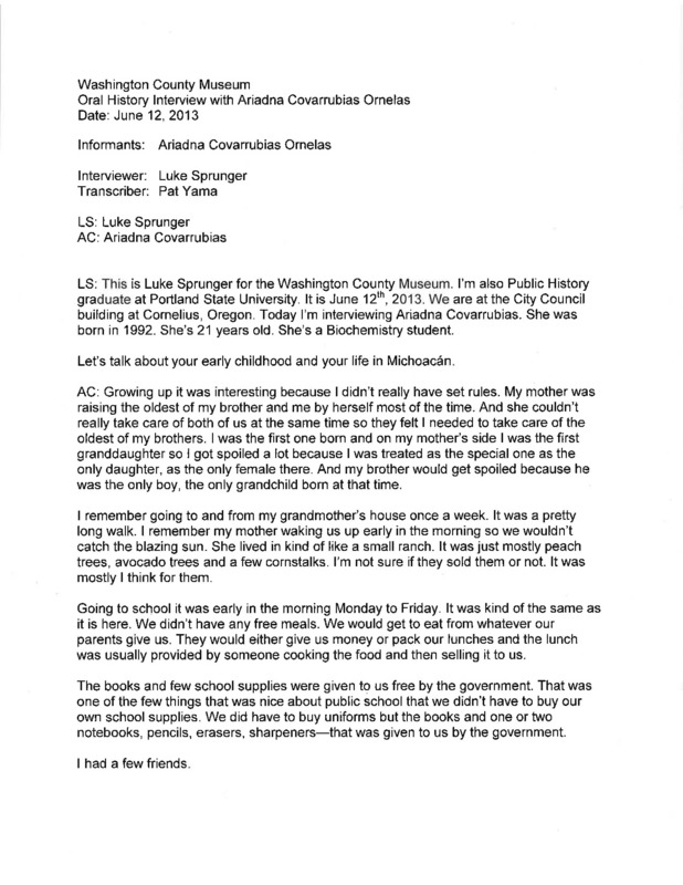 - An audio recording of an oral history of Ariadna Covarrubias on her university experience and Cornelius. There is a transcript of this interview.