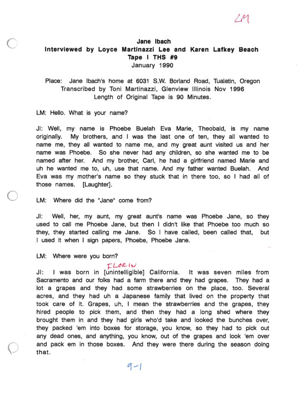 - An audio recording of an oral history of Jane Ilbach. Part 2 of 2. There is tape noise throughout the interview. There is a transcript of this interview.