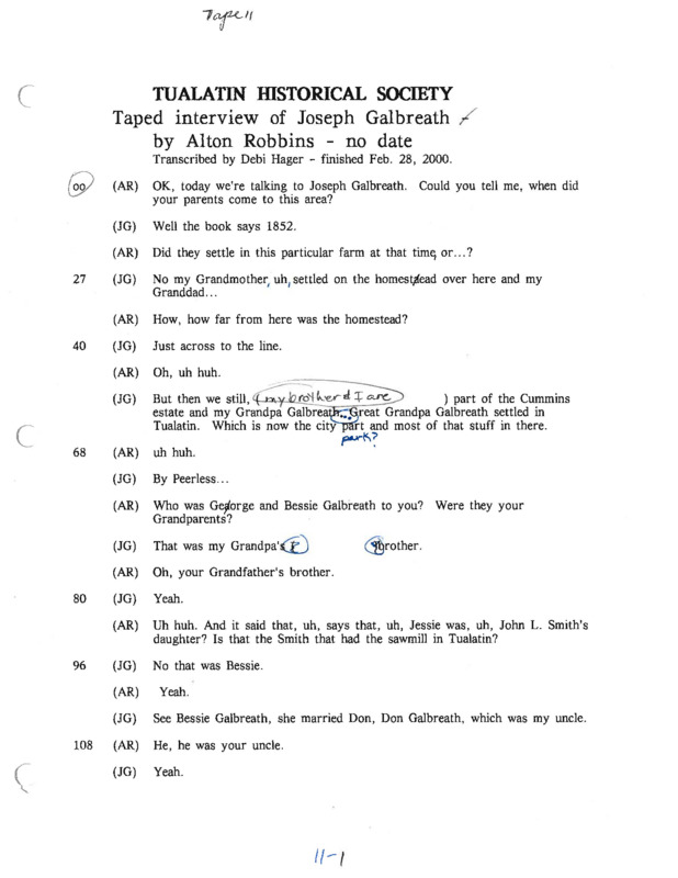 - An audio recording of an oral history of Joseph Galbreath. It is undated, but was probably recorded around 1995-2000. There is a transcript of this interview.