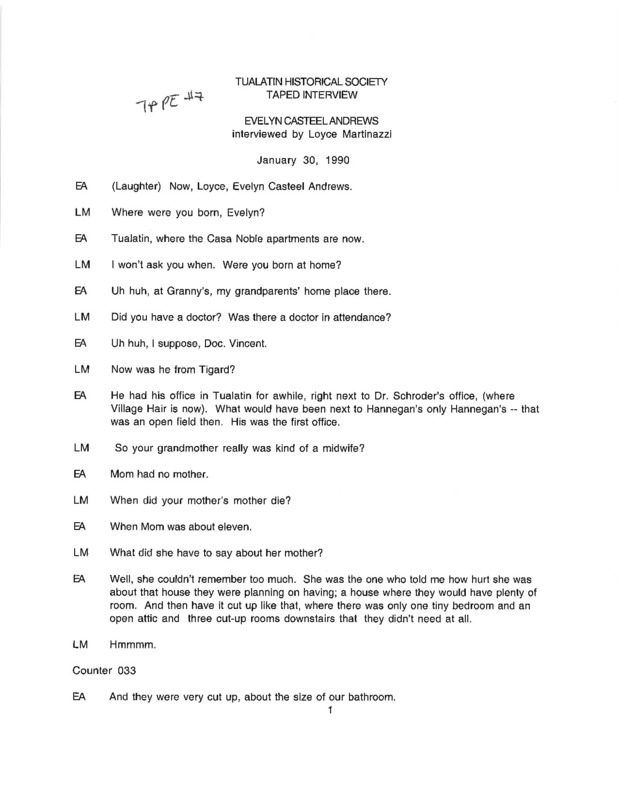 Evelyn Casteel Andrews oral history interview