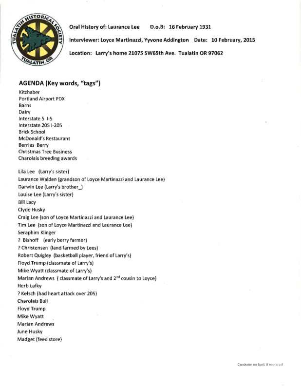 - An audio recording of an oral history of Laurance 'Larry' Lee. There is an index for this interview.