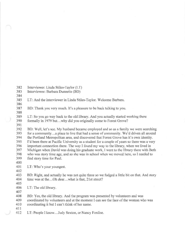 Barbara Dunnette oral history recording