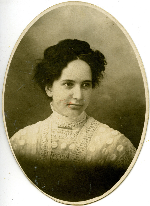 A portrait of a woman. This photograph was stored with a calling card that has "Miss Sears" on it. This indicates that the woman is likely Winnette or Bernice Sears. This photograph was probably created in Oregon. This photograph is part of the Charles Lovell and Winnette Sears Walker Collection. Winnette was a 1906 alumna of Linfield College. Charles was an alumnus of Tualatin Academy who later became a musician and an insurance agent in Hillsboro, Oregon.