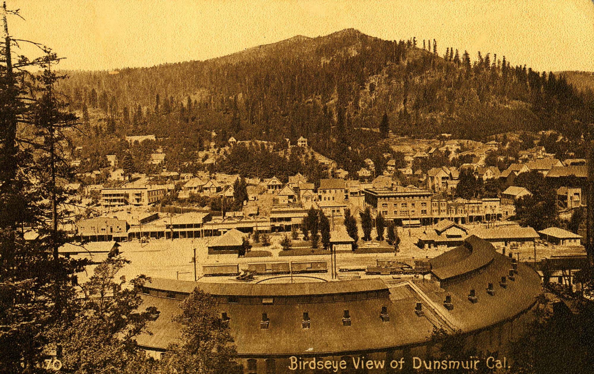 A birds-eye view of Dunsmuir, California. This photograph is printed on postcard stock and includes a short note from "ad". This photograph is part of the Charles Lovell and Winnette Sears Walker Collection. Winnette was a 1906 alumna of Linfield College. Charles was an alumnus of Tualatin Academy who later became a musician and an insurance agent in Hillsboro, Oregon.