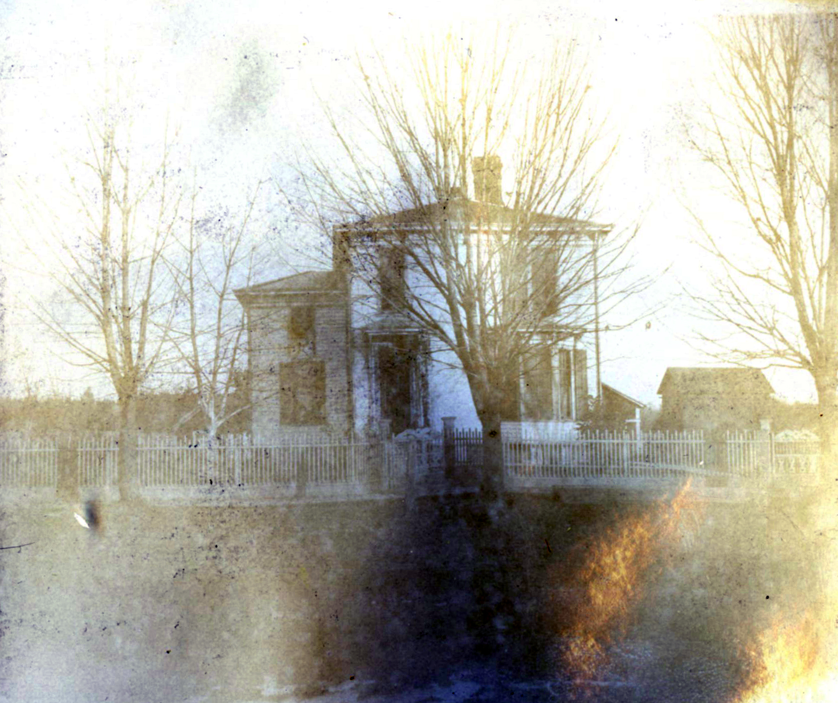 A photograph of the Smith-Buxton-Caples House (also known as the I.L. Smith House), located at 1938 16th Ave, Forest Grove, OR. The image in this photograph is reversed left-to-right, possible due to a misprint of the negative.