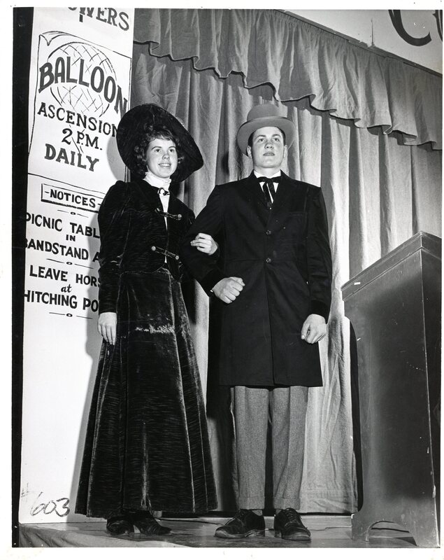 This is one photograph from a collection on the Gay Nineties festival and the the Original All-Northwest Barbershop Ballad Contest in Forest Grove, Oregon. The festival centered around a theme of nostalgia for the 1890s decade. The event, which ran from 1947 through the 1990s, featured a parade downtown, residents dressing up in 1890s-themed costumes for the celebrations, local businesses decorating their window displays, and the crown jewel of the event, the Original All-Northwest Barbershop Ballad Contest, which earned Forest Grove the nickname "Ballad Town U.S.A."