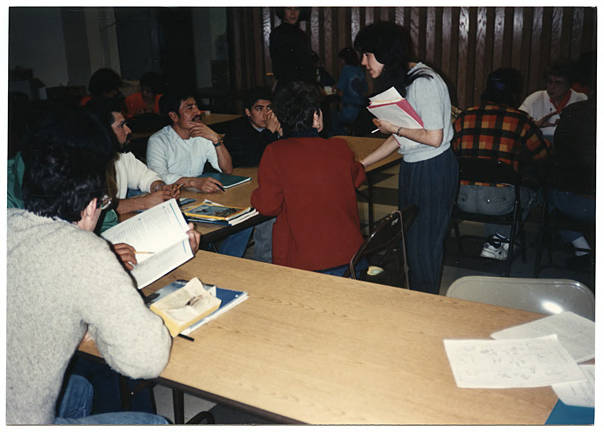 - A teacher speaking with students inside a Centro Cultural classroom.
