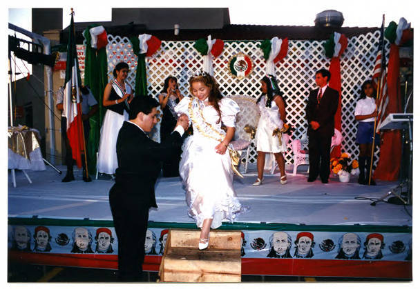 Photograph of beauty pageant participants walking down from the stage. Mexican Independence Day, celebrated on the 15th and 16th of September, often includes pageants as part of the celebration.