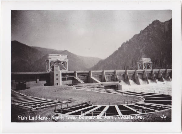 [front] Fish Ladder – North Side – Bonneville Dam, Wash.-Ore. A/W logo