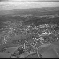 Black and white aerial view of Hillsboro, looking north. The large square building in the lower center of the image is the Carnation factory at the south edge of town, and the Washington County courthouse can be seen a few blocks north on First Avenue. See WCMpic_015495 for a similar view, taken ten years previous.