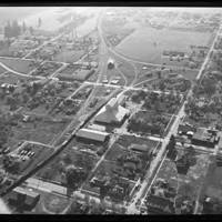 Black and white aerial view of Hillsboro, looking west. The Carnation Factory can be seen in the upper left of the image.