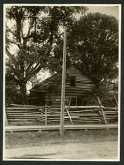 Photo of the cabin of Reverend Harvey Clark, taken in 1891. He was one of the founders of Pacific University, and died in Forest Grove in 1858. The cabin stood near what is now the intersection of 15th Avenue and Elm Street in Forest Grove.