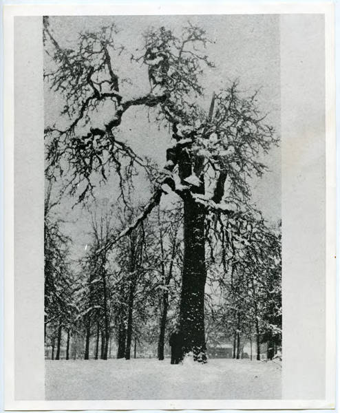 - Unidentifiable person standing next to Tabitha Brown's bee tree at Pacific University in Forest Grove, Oregon. Silver gelatin print of a newspaper clipping or copy of original.